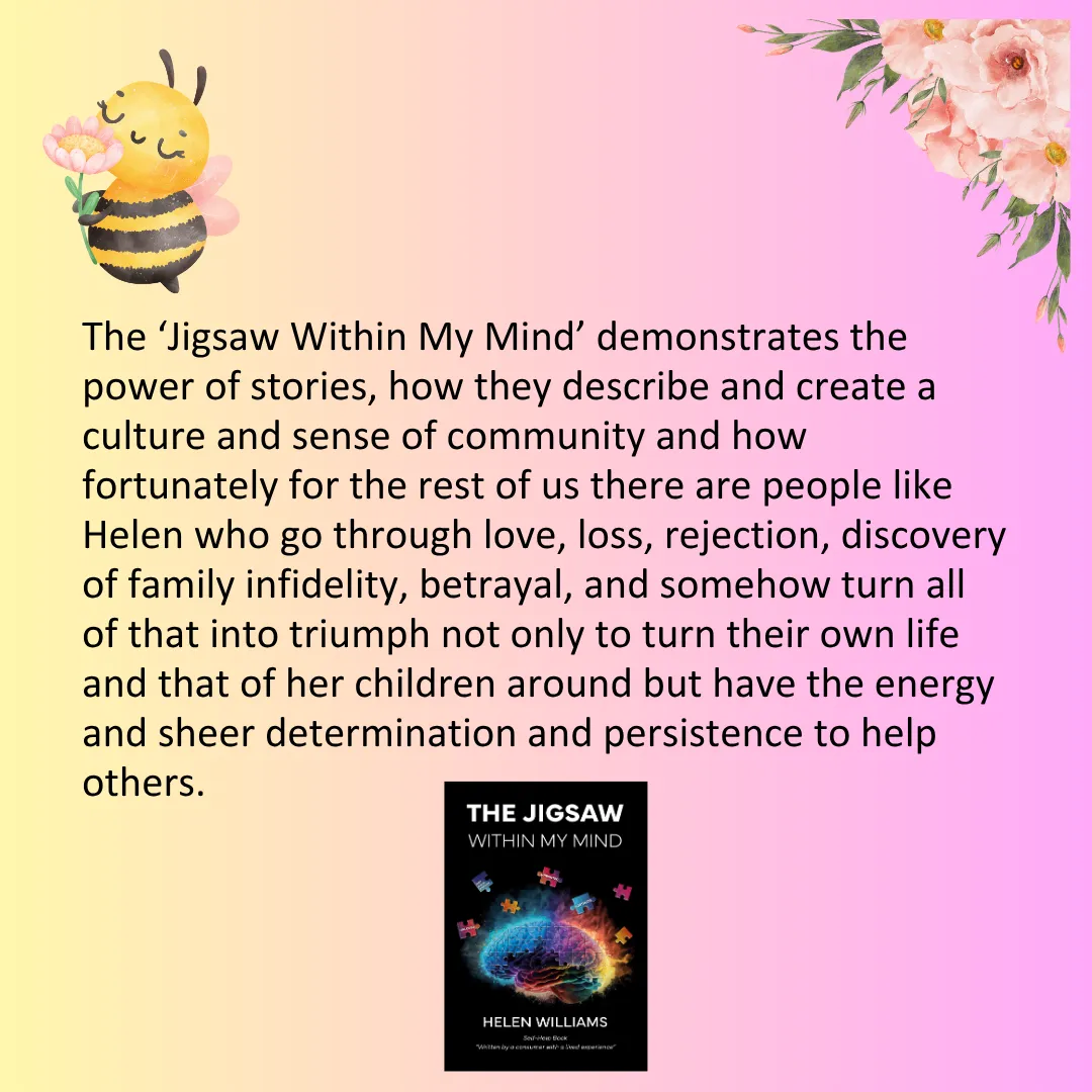 Not being content to leave matters there, Helen set about writing this powerful book which is about to be launched this year: “The Jigsaw Within My Mind “